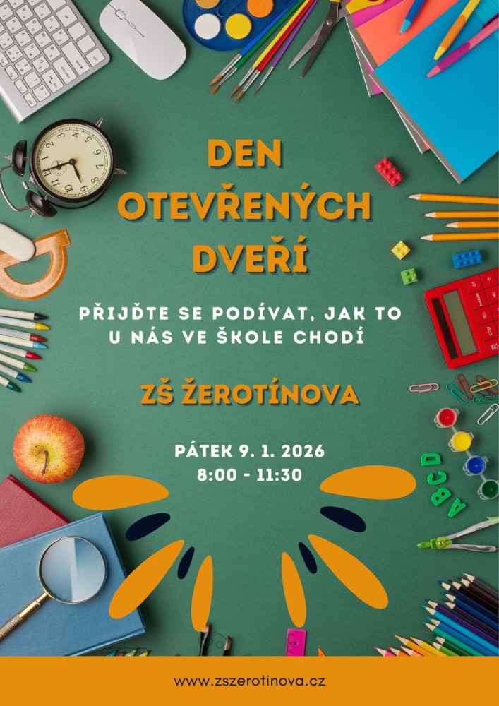 Přijďte se osobně přesvědčit, jak to u nás chodí! Na dni otevřených dveří ZŠ Žerotínova poznáte prostředí školy, setkáte se s učiteli a zjistíte vše potřebné k zápisu do 1. ročníku.