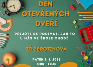 Přijďte se podívat v pátek 9.1.2026 od 8,00 - 11,30 hodin, jak to u nás ve škole chodí. Všichni jste srdečně zváni.